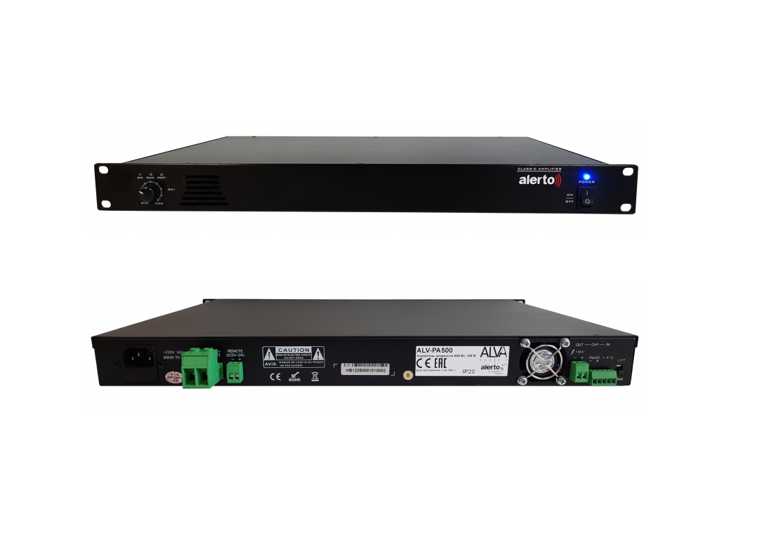 - ALV-PA500 Усилитель мощности, 500 Вт, системы аудио вещания и оповещения / Системы оповещения музыкальной трансляции / Усилители речевого оповещения